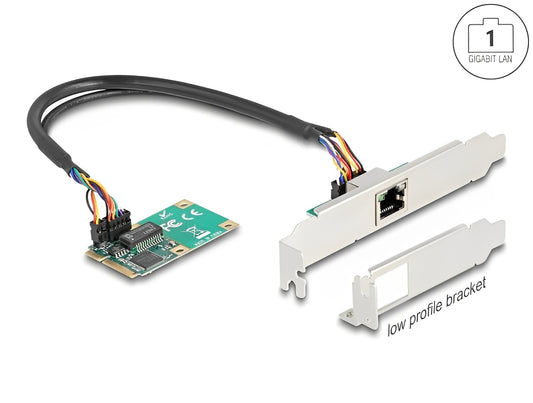 כרטיס רשת קווי Delock Mini PCIe Low profile עם יציאת RJ45 במהירות 1 ג'יגה-ביט | צ'יפ אינטל 82574L