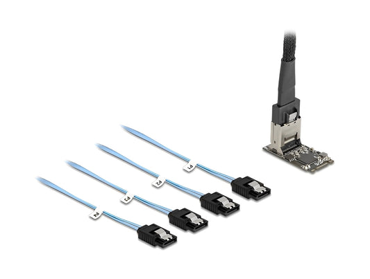 מתאם Delock ממיר מחיבור M.2 2242 (Key B+M) זכר ל-4 חיבורי SATA | אורך 1 מטר