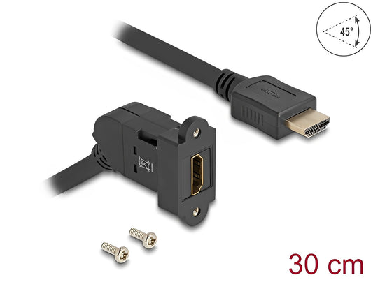 מתאם קיסטון Delock HDMI 8K 45° נ/ז | על כבל 30 ס"מ | עם תושבת לפאנל