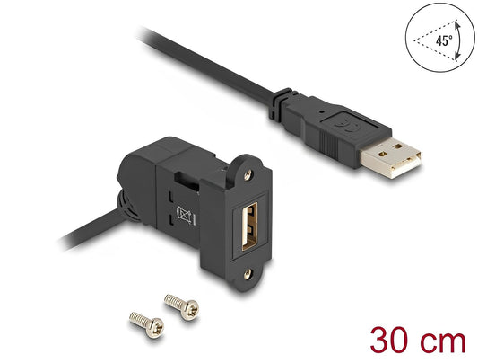 מתאם קיסטון Delock USB-A 2.0 45° נ/נ | על כבל 30 ס"מ | עם תושבת לפאנל