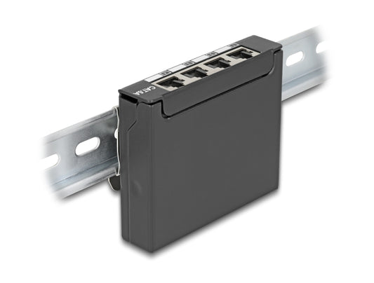 פאץ' פאנל Delock Cat.6A | 4 פורטים RJ45 | להרכבה על שולחן, קיר או מסילת DIN