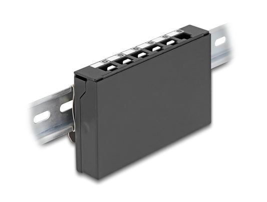 פאץ' פאנל Delock Cat.6A | 6 פורטים RJ45 | להרכבה על שולחן, קיר או מסילת DIN