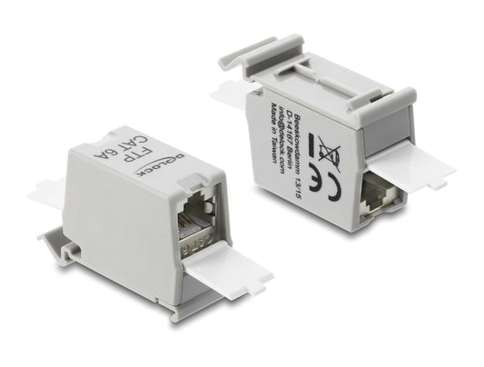 מתאם Delock מסוכך RJ45 Cat.6A נקבה לנקבה עם כיסוי אבק | תומך 4PPoE | להרכבה על מסילת DIN