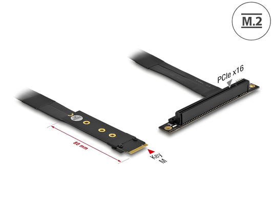 מתאם רייזר Delock מחיבור M.2 NVMe Key M זכר לסלוט PCIe x16 בזווית עם כבל 20 ס"מ