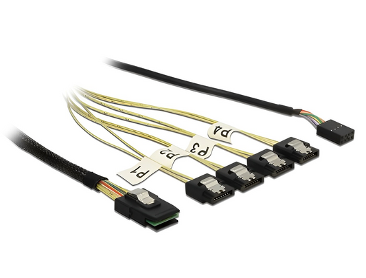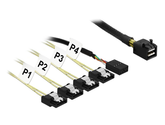 כבל Mini SAS HD SFF-8643 ל-Sideband + SATA 7 pin x 4