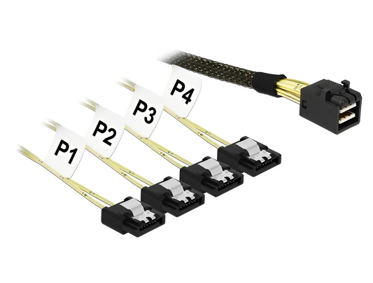 כבל Mini SAS HD SFF-8643 ל- SATA 7 pin x 4 בזווית 90°