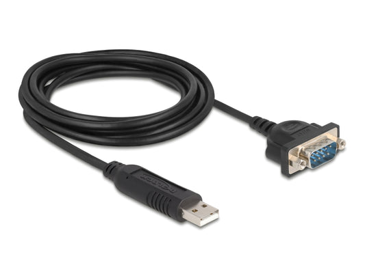 ממיר Delock מחיבור USB-A זכר לחיבור DB9 Compact RS-232 זכר עם אומים | צ'יפ FTDI | אורך 1.8 מטר