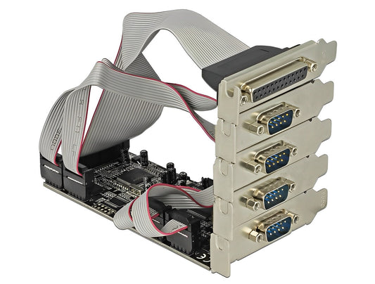 כרטיס PCIe x1 Serial RS-232 Low profile עם 4 יציאות DB9 + יציאת Parallel צ'יפ Moschip