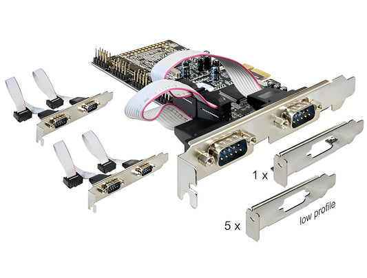 כרטיס PCIe x1 Serial RS-232 Low profile עם 6 יציאות DB9 צ'יפ Moschip