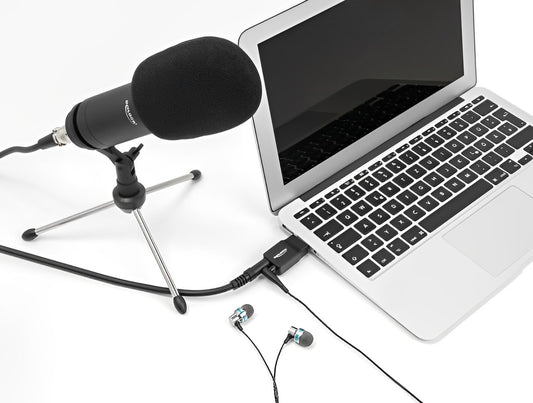 מתאם אוזניות Delock DAC 24 Bit / 96 kHz Hi-Res מחיבור USB-C זכר ל-2 יציאות pl 3.5 סטריאו 3 מגעים נקבה