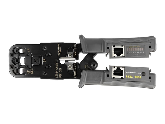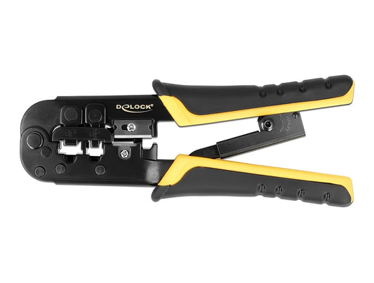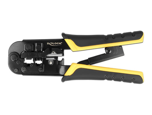 לוחץ כבל רשת מקצועי Delock לתקעים RJ45/RJ11 עם פתיחה קדמית | משולב עם חותך ומגלף