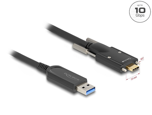 כבל אופטי אקטיבי Delock USB 10Gbps מחיבור USB-C זכר עם ברגים נעילה לחיבור USB-A זכר | מתאים לשימוש בשרשראות גרירה