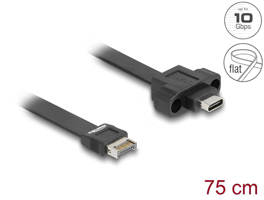 כבל שטוח לפאנל Delock USB 10Gbps מחיבור USB-E זכר לחיבור USB-C נקבה | אורך 75 ס"מ