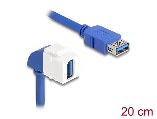 מתאם קיסטון USB-A 5Gbps 90° נ/נ על כבל 20 ס"מ צבע לבן