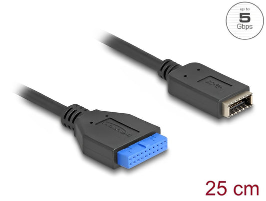 כבל Delock USB 5Gbps מחיבור 19 פין נקבה לחיבור USB-E נקבה | אורך 25 ס"מ