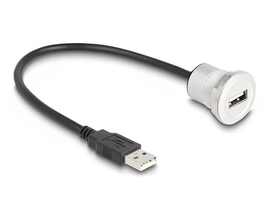 מתאם אלומיניום USB-A 2.0 ז/נ על כבל 30 ס"מ להתקנה בקדח עגול 23.7 מ"מ