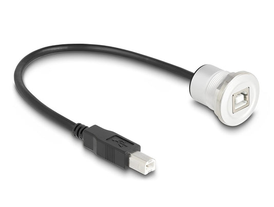 מתאם אלומיניום USB-B 2.0 ז/נ על כבל 30 ס"מ להתקנה בקדח עגול 23.7 מ"מ