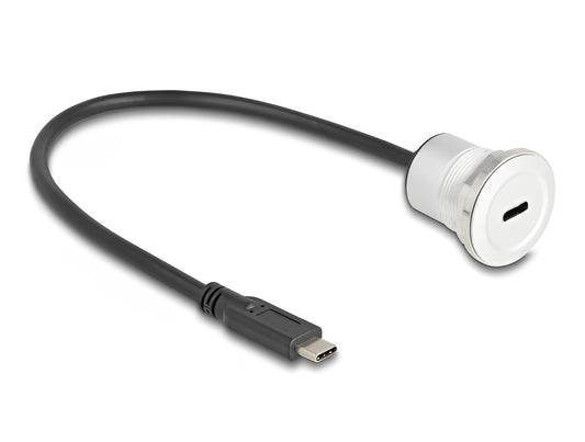 מתאם אלומיניום USB-C 10Gbps ז/נ על כבל 30 ס"מ להתקנה בקדח עגול 23.7 מ"מ