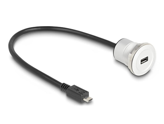 מתאם אלומיניום USB 2.0 Micro-B ז/נ על כבל 30 ס"מ להתקנה בקדח עגול 23.7 מ"מ