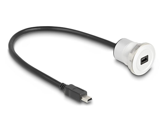 מתאם אלומיניום USB 2.0 Mini-B ז/נ על כבל 30 ס"מ להתקנה בקדח עגול 23.7 מ"מ