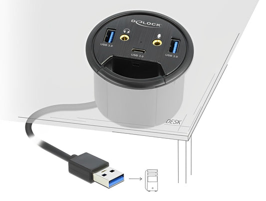 מפצל שולחני USB 3.2 5Gbps עם 3 יציאות USB-A/C + חיבור HD אודיו