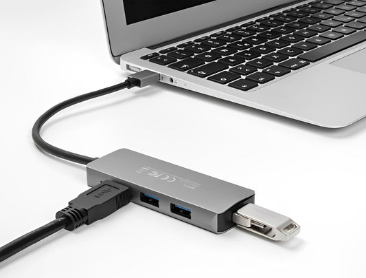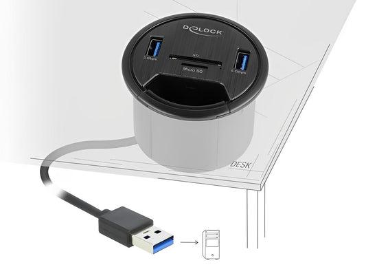 מפצל שולחני USB 3.2 5Gbps עם 2 יציאות USB-A וקורא כרטיסים