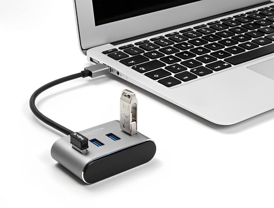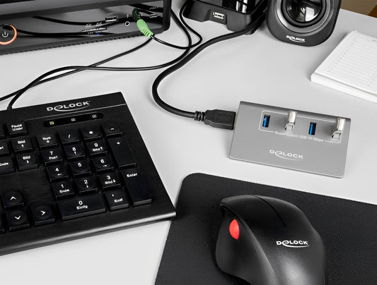 מפצל Delock 5Gbps עם 3 יציאות USB-A + יציאת רשת Gigabit LAN | חיבור למחשב USB-A/C
