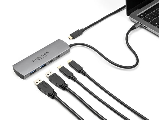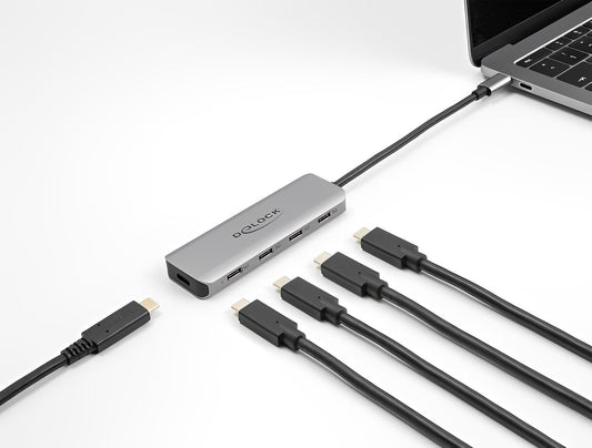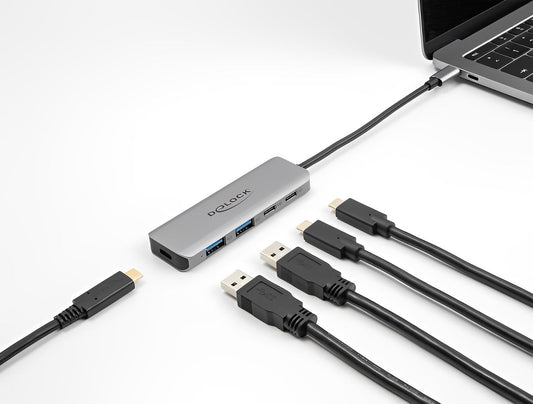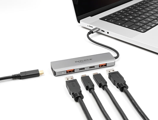 מפצל Delock USB-C 10Gbps PD 3.0 90Watt עם 7 יציאות USB-A/C וחיבור למסך HDMI 4K