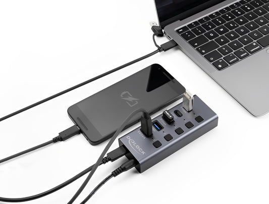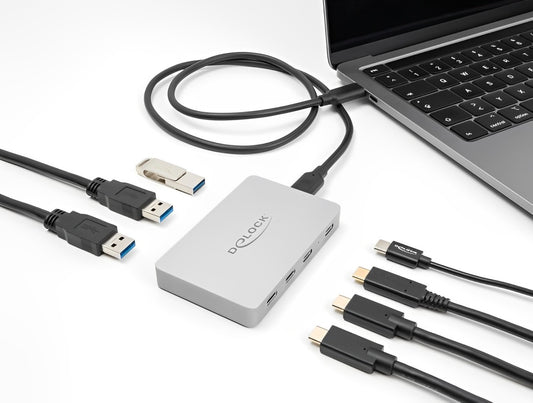 מפצל Delock USB-C 10Gbps עם 7 יציאות USB-A/C תומך PD 80 W