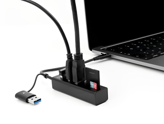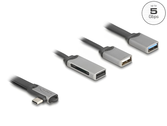 מפצל Delock USB-C 5Gbps עם 2 יציאות USB-A כולל קורא כרטיסי SD ו-Micro SD