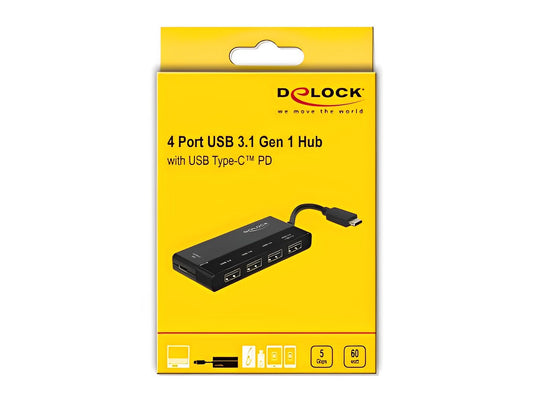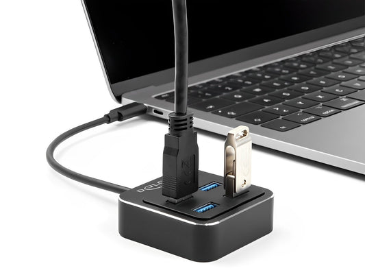 מפצל שקוף Delock USB 5Gbps עם 4 יציאות USB-A | חיבור למחשב USB-A/C