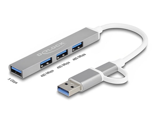 מפצל USB-C Slim עם 3 יציאות USB-A 480Mbps + יציאת USB-A 5Gbps