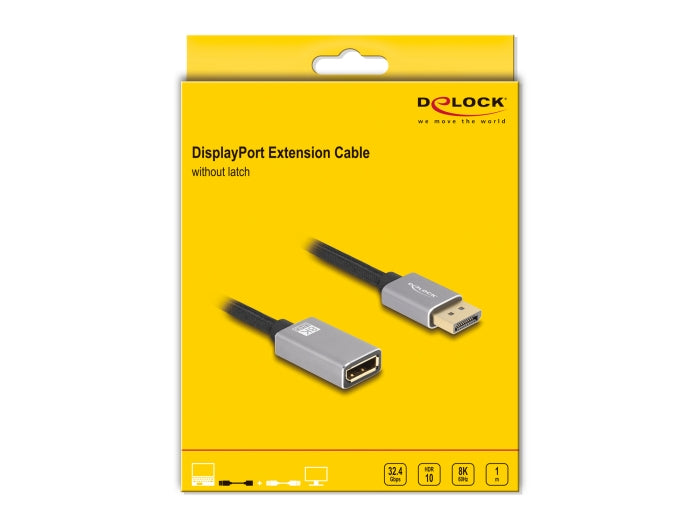 Delock DisplayPort extension cable 8K 60 Hz grey metal without latch - delock.israel