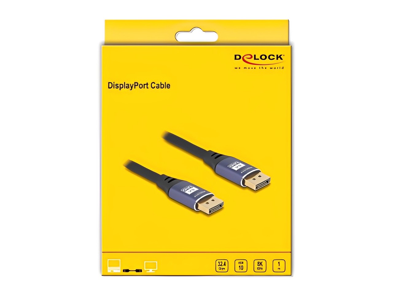 כבל DisplayPort 1.4 8K מבית Delock גרמניה מספק חיבור יציב ואיכותי בין מחשבים, מסכים, מקרנים או טלוויזיות.