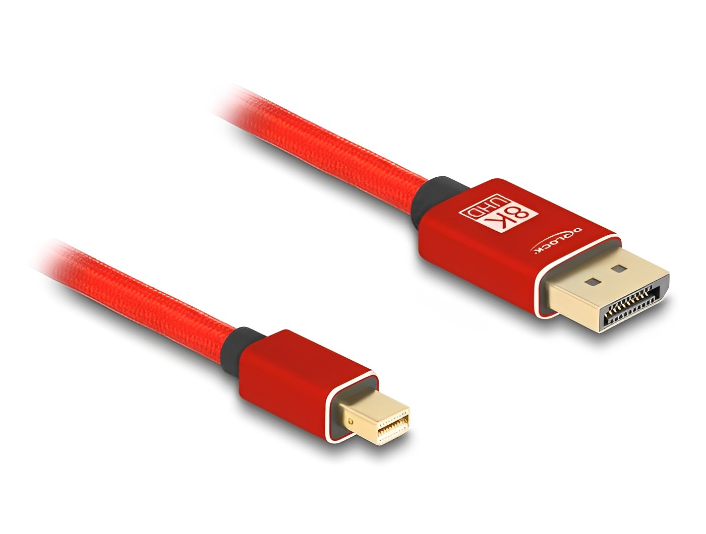 כבל Delock DisplayPort 1.4 8K HDR Red metal מחיבור DP זכר לחיבור מיני DP זכר תומך 60 הרץ