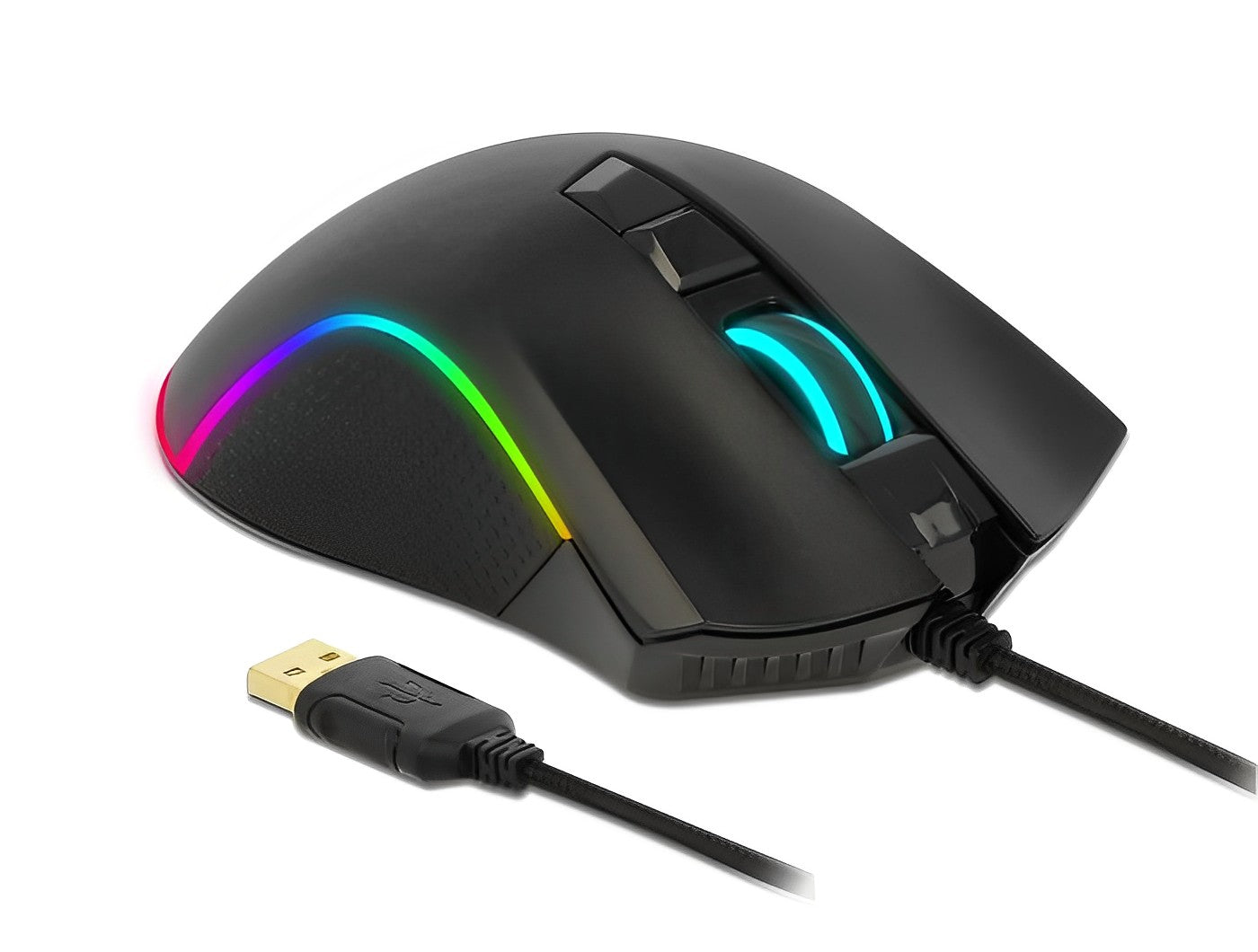 עכבר גיימינג ארגונומי USB RGB עם 7 לחצנים מתחבר למחשב עם כבל USB.
