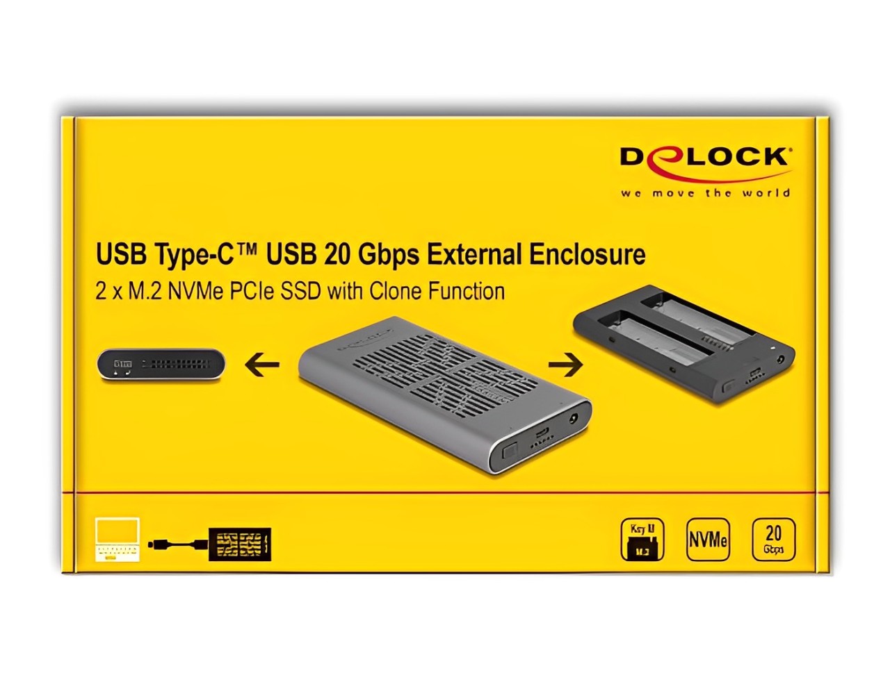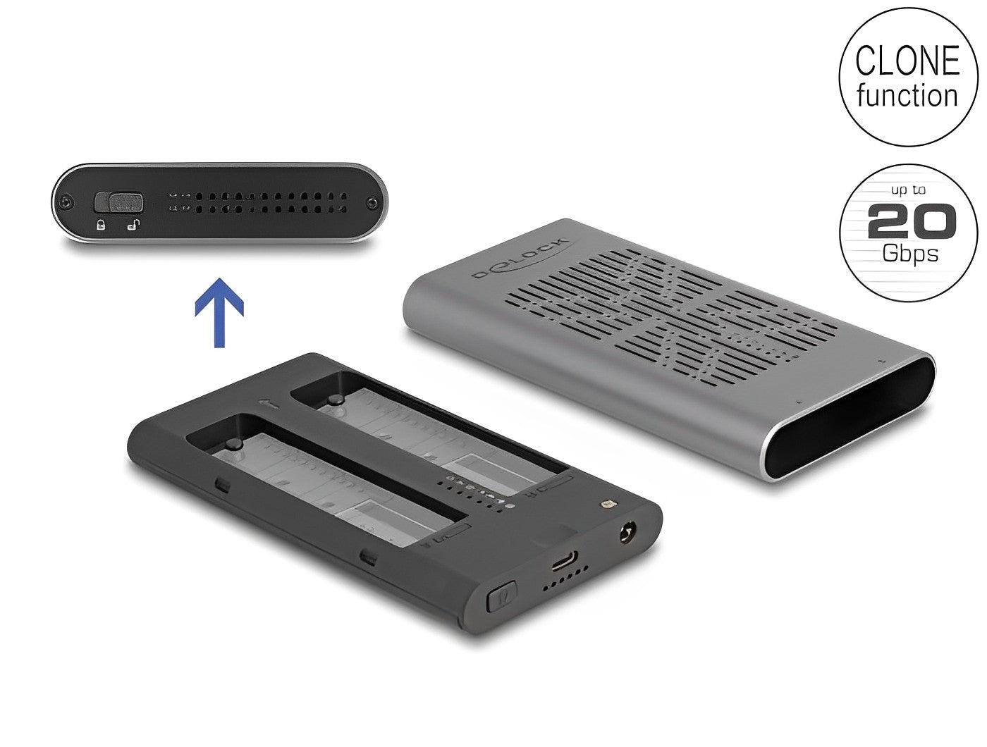 Delock External USB 20 Gbps Enclosure for 2 x M.2 NVMe PCIe SSD with USB Type-C™ female and Clone function