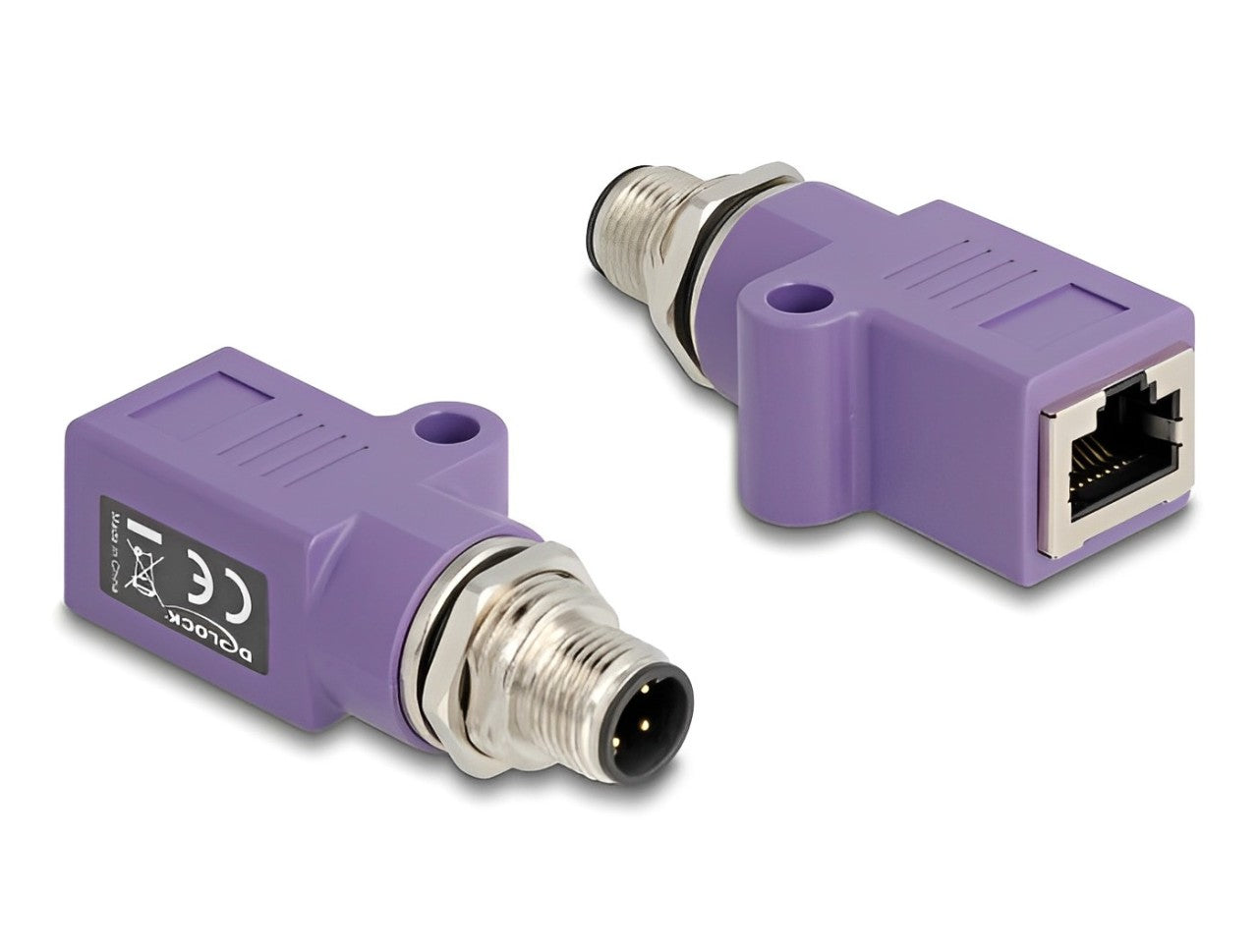 Delock M12 Adapter D-coded 4 pin female to RJ45 jack Cat.5e with mounting hole straight violet