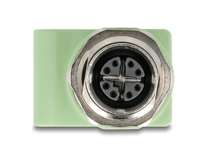 Delock M12 Adapter X-coded 8 pin female to RJ45 jack Cat.5e with mounting hole straight green
