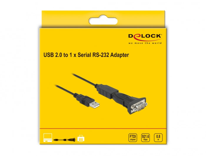 Delock Adapter USB 2.0 Type-A to 1 x Serial RS-232 D-Sub 9 pin male with nuts