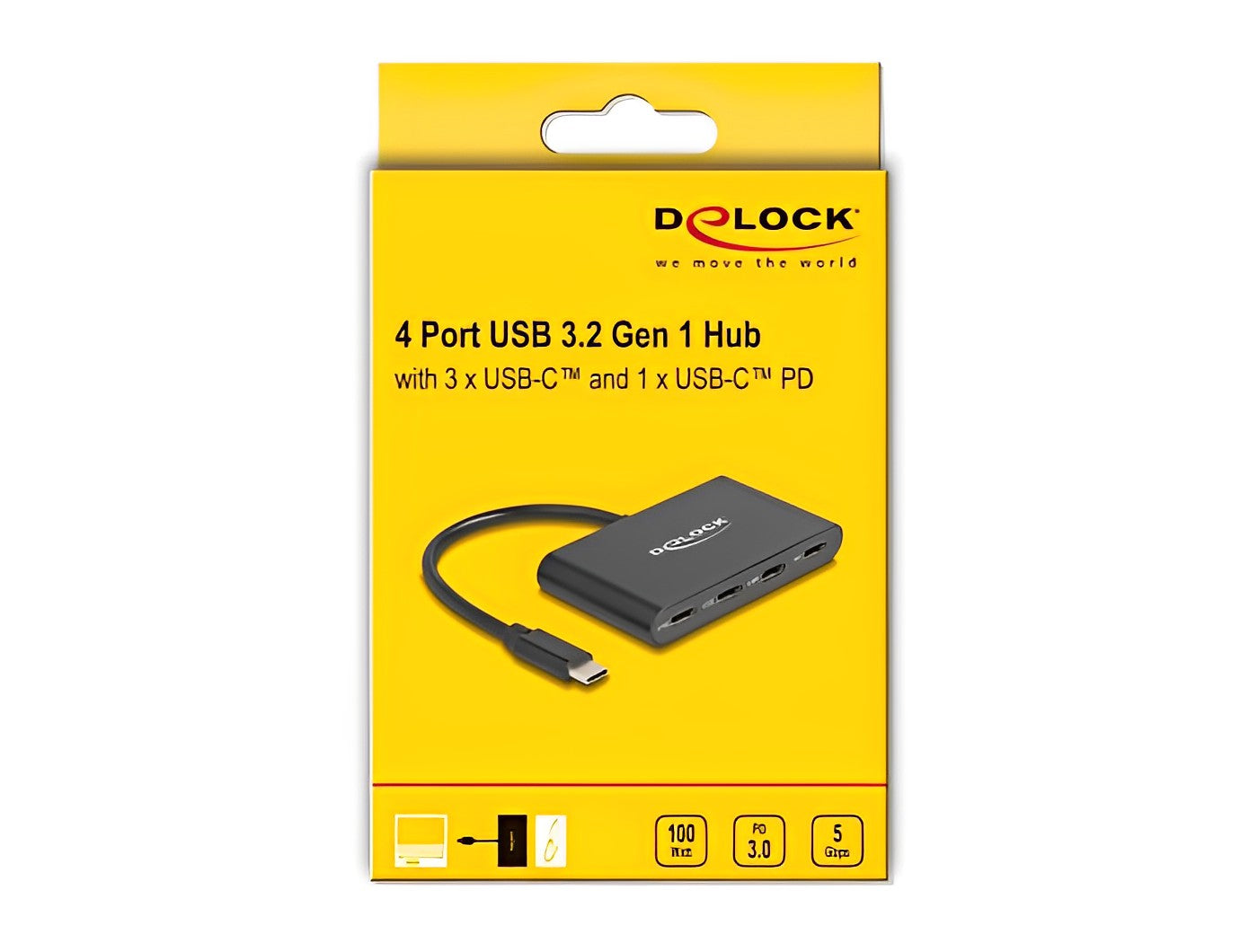 Delock USB 3.2 Gen 1 USB Type-C™ Hub with 3 x USB Type-C™ female + 1 x USB Type-C™ PD 100 Watt