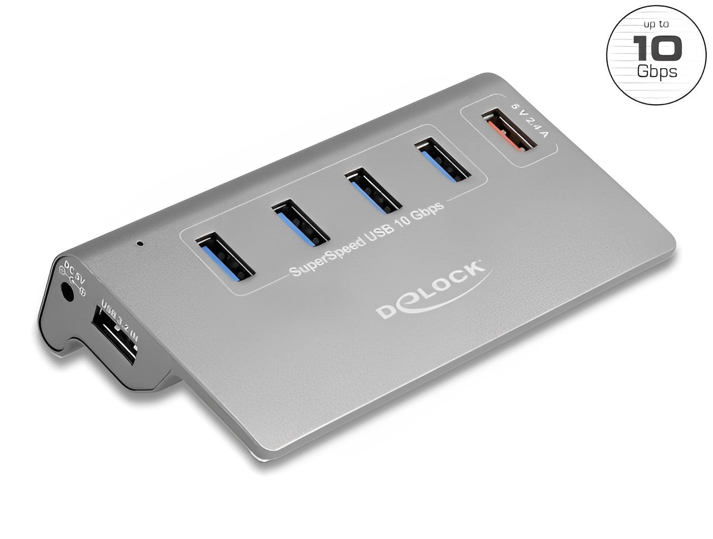 Delock USB 10 Gbps Hub with 4 USB Type-A Ports + 1 Fast Charging Port incl. Power Supply