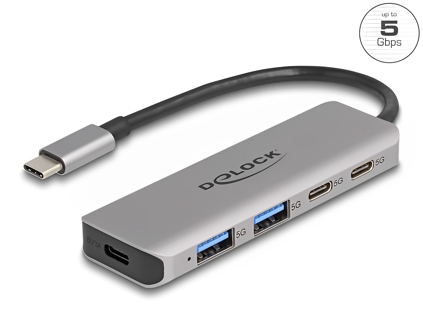 Delock USB 5 Gbps 2 Port USB Type-C™ and 2 Port Type-A Hub with USB Type-C™ connector