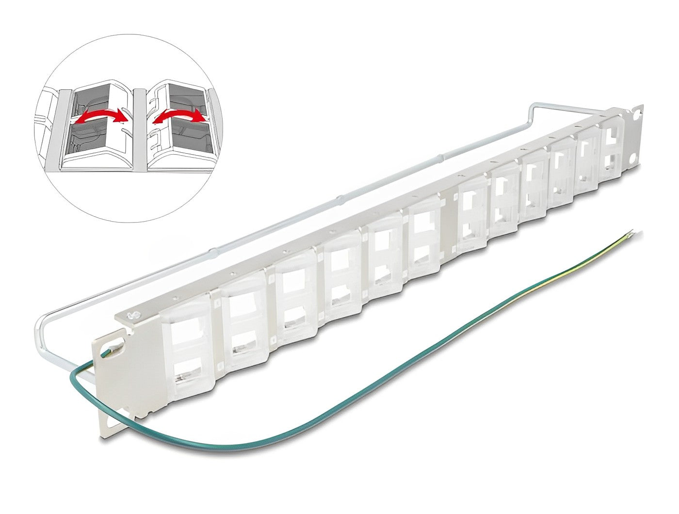 Delock 19″ Keystone Patch Panel with 24 tiltable ports and strain relief