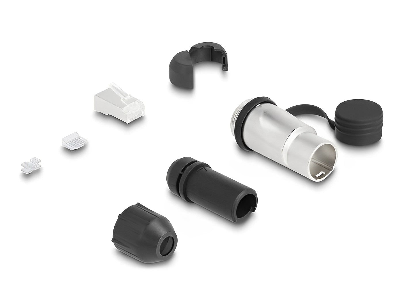 Delock RJ45 Modular Plug Cat.6A for self-assembly with robust cable plug housing coupler and protective cap suitable for Delock feed-through couplers 67061 and 67062 IP66 dust and waterproof