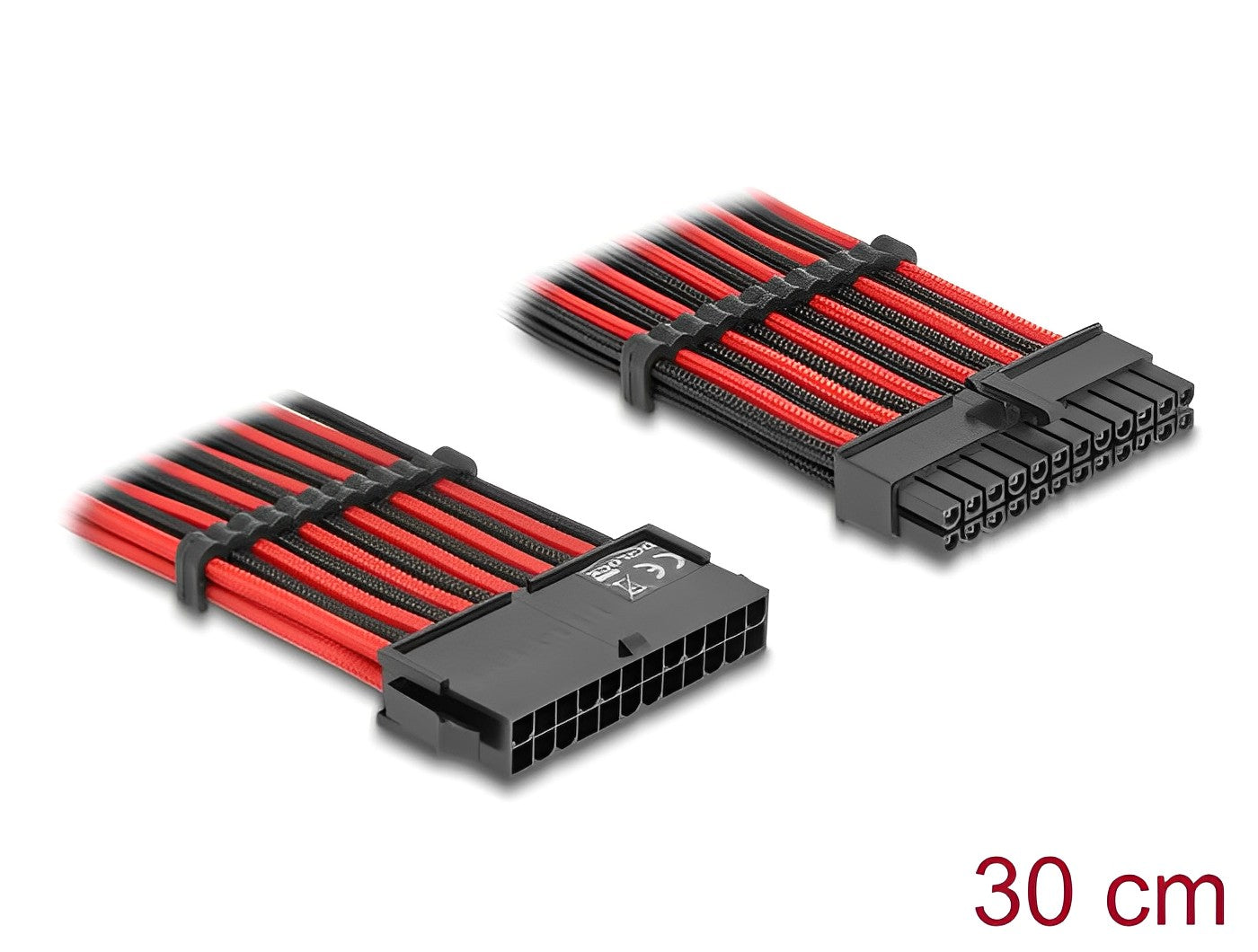Delock Extension Cable 24 pin ATX male to 24 pin ATX female textile shielding red-black 30 cm