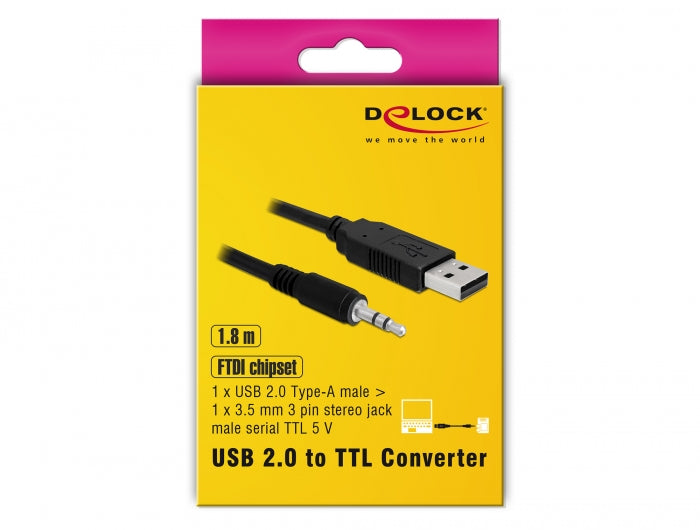 Delock Converter USB 2.0 Type-A male to Serial TTL 3.5 mm 3 pin stereo jack 1.8 m (5 V)