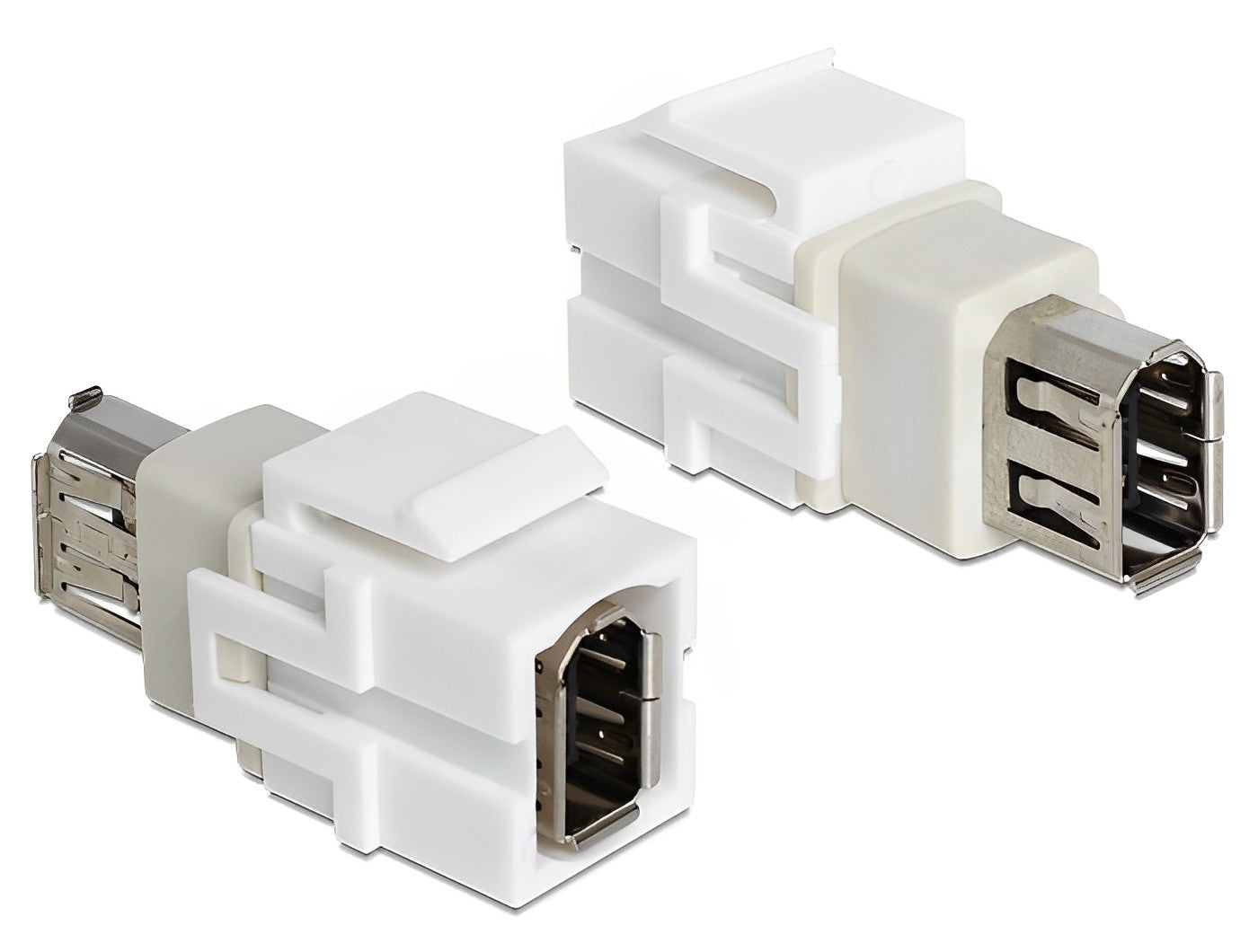 מתאם קיסטון USB 2.0 מתאים להרכבה קלה בפאץ' פאנל או בקופסאות לקיר עם שקע קיסטון או במתאמי גוויס.