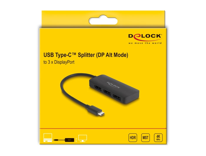 Delock USB Type-C™ Splitter (DP Alt Mode) to 3 x DisplayPort MST 4K 60 Hz
