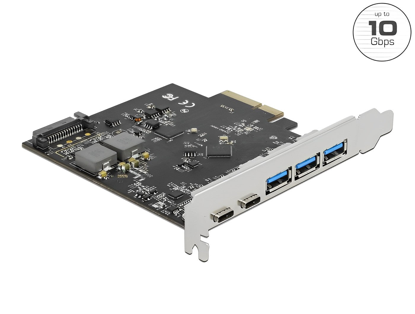 Delock PCI Express x4 Card to 2 x USB Type-C™ + 3 x USB Type-A - SuperSpeed USB 10 Gbps